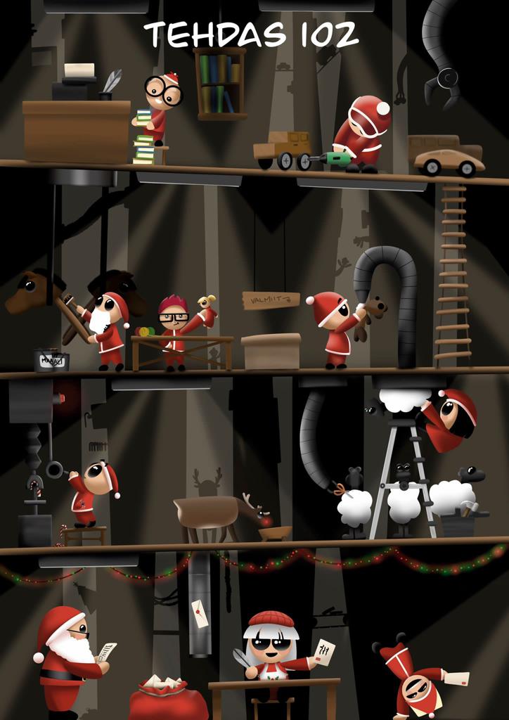 Kahden yrittäjätontun voimin halusimme tuoda hieman sitä jännitystä myös meille aikuisille. Lapsenomainen suhtautuminen joulunodotukseen on mielestämme edelleen mahdollista ja mikäs sen parempaa, kuin jouluinen seikkailu! Näin syntyi seikkailullinen joulukalenteri.